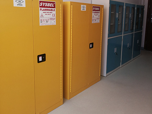 藥品柜是化學(xué)實(shí)驗(yàn)室必不可少的櫥柜。主要放置固體化學(xué)試劑和標(biāo)準(zhǔn)溶液,這兩者必須分類放置,不可混放在一起。放置化學(xué)試劑應(yīng)分類放置,便于查找。同時(shí)為了安全,藥品柜應(yīng)設(shè)置玻璃門窗,柜體也應(yīng)具有一定的承重能力和防腐蝕性。